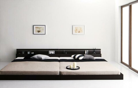 連結ベッド キング ワイド 2人 3人 4人 つなげる ファミリー ローベッド ロータイプ 低い 宮付き 枕元 棚 携帯 スマホ ティッシュ メガネ リモコン ラック ライト コンセント 充電 ベッド フレーム おしゃれ モダン 照明 読書灯 国産ボンネルCマットレス付き 幅260(SD+D)