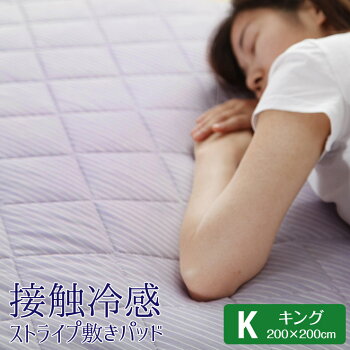 接触冷感 ストライプ敷パッドシーツ S シングルサイズ SD セミダブルサイズ D ダブルサイズ Q クイーンサイズ K キングサイズ 接触冷感 ストライプ柄枕カバー 63×43cm(2枚セット)